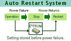 When power failure occurs during the operation, the unit will automatically restart as the last setting condition once the power is resumed. Option is provided to cancel.